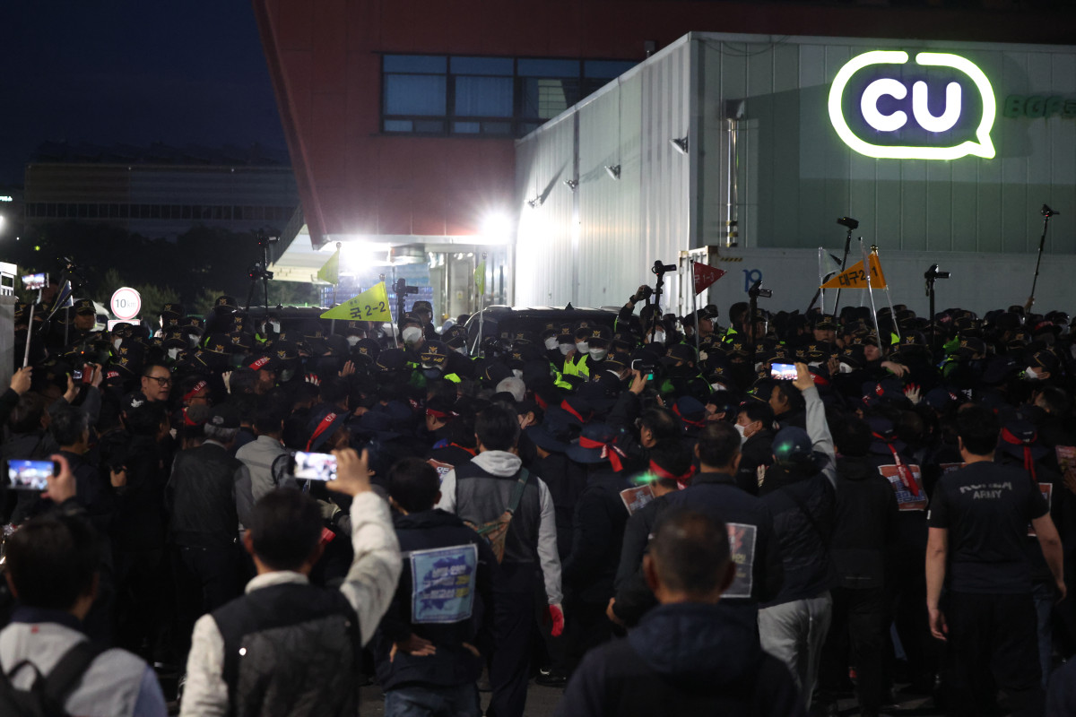 °æ³² ÁøÁÖ CU ¹°·ù¼¾ÅÍ Àαٿ¡¼ ¹ß»ýÇÑ Á¶ÇÕ¿ø »ç¸Á »ç°í¸¦ °è±â·Î ±ØÇÑ ´ëÄ¡·Î Ä¡´Ý´ø ¹ÎÁÖ³ëÃÑ °ø°ø¿î¼ö³ëÁ¶ ȹ°¿¬´ë¿Í BGF·ÎÁö½º °£ °¥µîÀÌ ´ëÈ ±¹¸éÀ¸·Î ÀüȯµÉÁö ÁÖ¸ñµÈ´Ù.