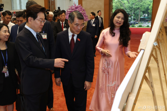 ÀÌÀç¸í ´ëÅë·ÉÀÌ º£Æ®³² °æÁ¦ ºÐ¾ß ½Ç±ÇÀ» Áå ·¹ ¹Ö Èï ÃѸ®¸¦ ¸¸³ª "Çѱ¹ Á¤ºÎ°¡ º£Æ®³² Á¤ºÎ¿Í ÇÔ²² °æÁ¦ ¹ßÀüÀÇ ½Å¼ºÀå µ¿·ÂÀÎ ¿øÀü, ±³Åë ÀÎÇÁ¶ó, ¿¡³ÊÁö µî¿¡¼ Àü·«Àû Çù·ÂÀ» °ÈÇØ °¨À¸·Î½á »õ·Î¿î È«°ÀÇ ±âÀûÀ» ÇÔ²² ¸¸µé¾î³ª°¥ ¼ö ÀÖµµ·Ï ÃѸ®´ÔÀÇ ¸¹Àº °ü½É°ú ¹è·Á¸¦ ºÎʵ台´Ù"°í °Á¶Çß´Ù. Èï ÃѸ®´Â ÀÌ¿¡ "º£Æ®³²ÀÇ ¸ñÇ¥ ´Þ¼º¿¡ ÇÔ²² Çù·ÂÇϰí Áö¿øÇØ ÁÖ½Ã±æ ±â´ëÇÑ´Ù"°í È´äÇß´Ù.