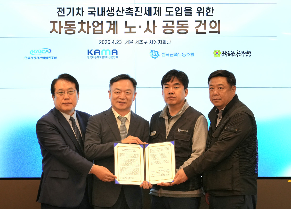 23ÀÏ Àü±¹±Ý¼Ó³ëµ¿Á¶ÇÕ°ú Àü±¹±Ý¼Ó³ëµ¿Á¶ÇÕ¿¬¸Í, Çѱ¹ÀÚµ¿Â÷¸ðºô¸®Æ¼»ê¾÷Çùȸ(KAMA), Çѱ¹ÀÚµ¿Â÷»ê¾÷Çùµ¿Á¶ÇÕ(KAICA) µî 4°³ ´Üü´Â ¼¿ï ¼Ãʱ¸ ÀÚµ¿Â÷ȸ°ü¿¡¼ ³ë¡¤»ç °øµ¿ °ÇÀǹ®À» ¹ßÇ¥Çß´Ù. ±¹³»»ý»êÃËÁø¼¼Á¦´Â Àü·« »ê¾÷ Á¦Ç°ÀÇ ±¹³» »ý»ê¡¤ÆÇ¸Å ½ÇÀû¿¡ ¿¬µ¿ÇØ ¼¼¾×°øÁ¦¸¦ Á¦°øÇÏ´Â Á¦µµ·Î, Àü±âÂ÷ µî ¹Ì·¡Â÷ ºÐ¾ß¸¦ Æ÷ÇÔÇØ¾ß ÇÑ´Ù´Â °ÍÀÌ ÇÙ½ÉÀÌ´Ù.