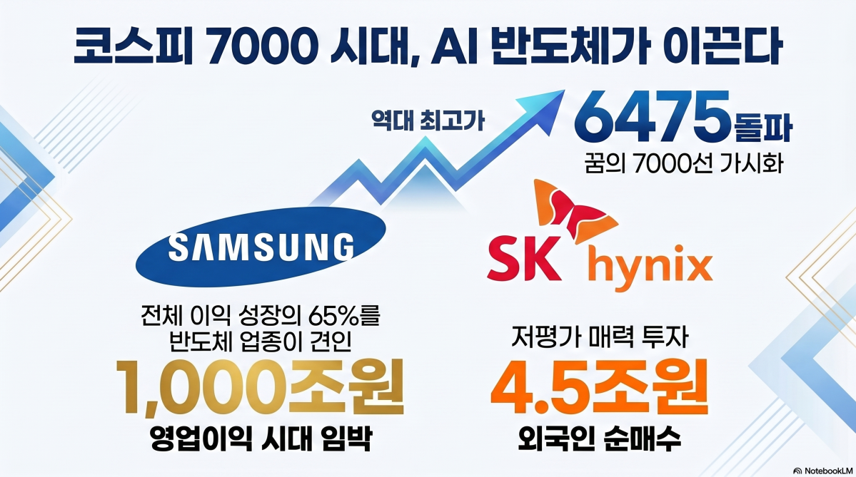 ÄÚ½ºÇǰ¡ 6470¼±À» µ¹ÆÄÇϸç 3°Å·¡ÀÏ ¿¬¼Ó ¿ª´ë ÃÖ°í°¡¸¦ °æ½ÅÇÑ °¡¿îµ¥, ½ÃÀå¿¡¼´Â ÀΰøÁö´É(AI) ¹ÝµµÃ¼ÀÇ ½ÇÀû Æø¹ß·ÂÀ» ¹ßÆÇ »ï¾Æ ²ÞÀÇ °íÁöÀÎ 7000¼± µ¹ÆÄ°¡ °¡½Ã鵃 °ÍÀ̶ó´Â Àü¸ÁÀÌ ³ª¿Â´Ù.
