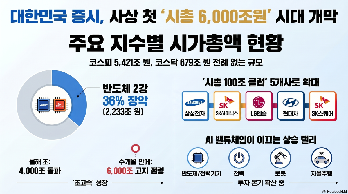 ±¹³» Áõ½Ã ½Ã°¡ÃѾ×ÀÌ »ç»ó óÀ½À¸·Î 6000Á¶¿øÀ» ³Ñ¾î¼¹´Ù. ÄÚ½ºÇÇ Áö¼ö°¡ »ç»ó ÃÖ°íÄ¡¸¦ ´Ù½Ã ¾²°í ÄÚ½º´Ú Áö¼öµµ 1200¼± À§¿¡ ¾ÈÂøÇÏ¸é¼ »ï¼ºÀüÀÚ¿Í SKÇÏÀ̴нº µî ´ëÇü ¹ÝµµÃ¼ÁÖ¸¦ Áß½ÉÀ¸·Î ¸öÁýÀÌ ºü¸£°Ô ºÒ¾î³µ´Ù.