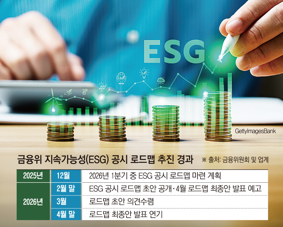 27ÀÏ ±ÝÀ¶±Ç¿¡ µû¸£¸é ±ÝÀ¶À§´Â ESG °ø½Ã ·Îµå¸Ê ÃÖÁ¾¾È °ø°³ ½ÃÁ¡À» 4¿ù ÀÌÈÄ·Î ¹Ì·ð´Ù. ±¹¹Î¿¬±Ý, Æ÷½ºÄÚ µî ÁÖ¿ä ±â¾÷°ú ÅõÀÚ¾÷°è, ÇÐ°è µî¿¡¼ ´Ù¾çÇÑ Àǰ߼°¡ Á¦ÃâµÇ¸é¼ À̸¦ ¹Ý¿µÇÏ´Â °úÁ¤ÀÌ ±æ¾îÁ³´Ù´Â ¼³¸íÀÌ´Ù. ¾÷°è¿¡¼´Â ´ÙÀ½ ´Þ Áß ¹ßÇ¥ °¡´É¼º¿¡ ¹«°Ô¸¦ µÎ°í ÀÖ´Ù.
