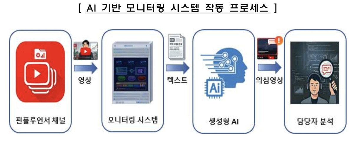 ±Ý°¨¿øÀº ÃÖ±Ù AI ±â¹Ý ½Ç½Ã°£ °¨½Ãü°è¸¦ µµÀÔÇØ ÇÉÇ÷ç¾ð¼ °ü·Ã ºÒ¹ý ±ÝÀ¶ÇàÀ§¸¦ 24½Ã°£ »ó½Ã ¸ð´ÏÅ͸µÇϰí ÀÖ´Ù°í 28ÀÏ ¹àÇû´Ù. AI°¡ À¯Æ©ºê µî ä³ÎÀÇ ½Å±Ô ¿µ»óÀ» ÀÚµ¿À¸·Î °¨ÁöÇϰí, ¿µ»óÀÇ À½¼º°ú ÀÚ¸·À» ºÐ¼®ÇØ À§¹ý ¿©ºÎ¸¦ ¡®À§¹ý¡¤Àǽɡ¤Á¤»ó¡¯À¸·Î ºÐ·ùÇÏ´Â ¹æ½ÄÀÌ´Ù. ÀÌÈÄ Á¦º¸ ¹× ½ÃÀåÁ¤º¸¿Í ¿¬°èÇØ Á¤¹Ð ºÐ¼®À» ÁøÇàÇϰí, À§¹ý Á¤È²ÀÌ È®ÀÎµÇ¸é ¼ö»ç±â°ü Å뺸 ¹× ÇàÁ¤ Á¶Ä¡·Î À̾îÁø´Ù.