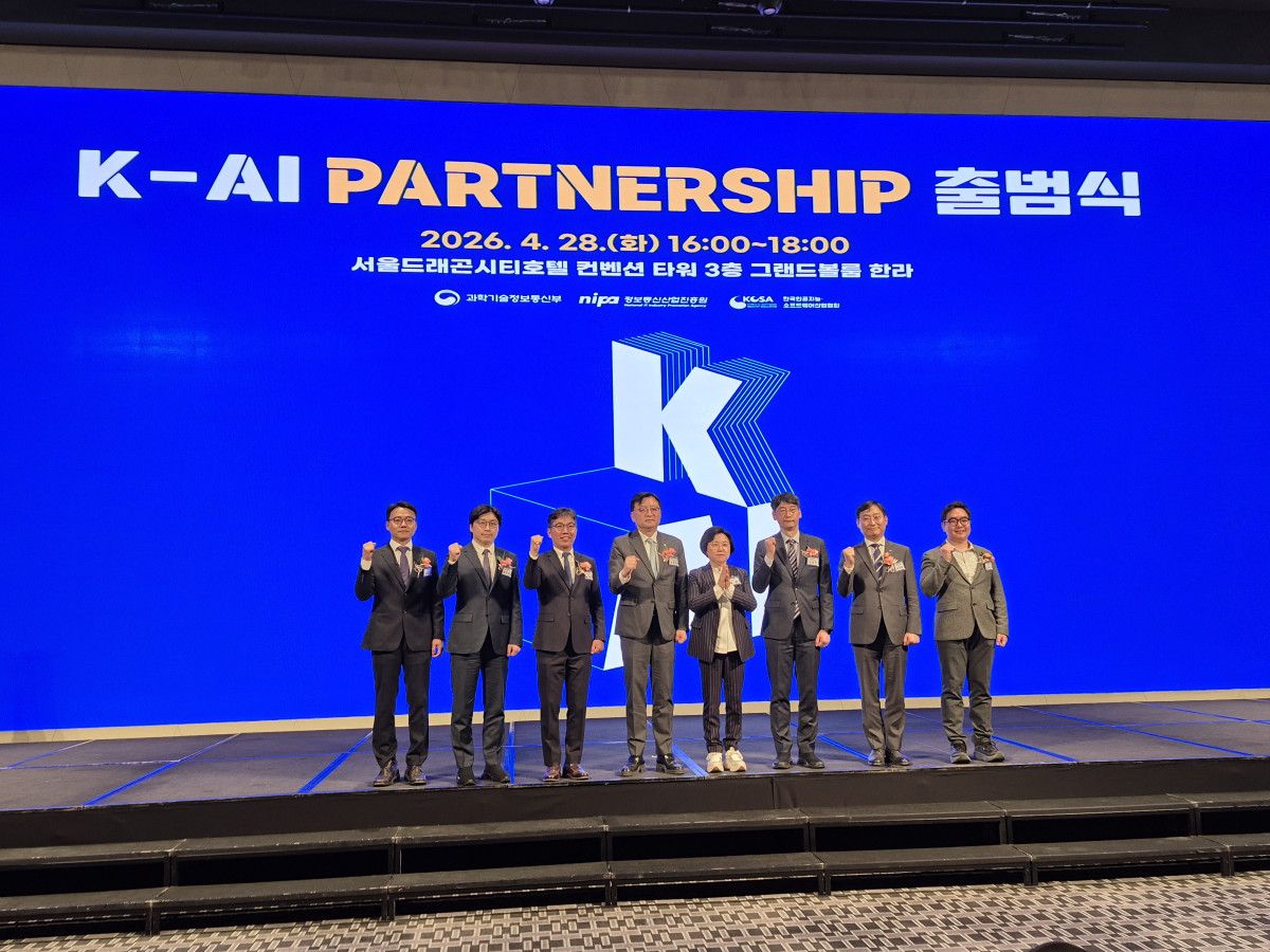 28ÀÏ °úÇбâ¼úÁ¤º¸Åë½ÅºÎ¿Í Çѱ¹ÀΰøÁö´É¡¤¼ÒÇÁÆ®¿þ¾î»ê¾÷Çù(KOSA)´Â ¼¿ï µå·¡°ï½ÃƼȣÅÚ¿¡¼ AI ´ëÇ¥ ¹Î°£ ¿¬ÇÕüÀÎ ¡®K-AI ÆÄÆ®³Ê½Ê¡¯ Ãâ¹ü½ÄÀ» °³ÃÖÇß´Ù. AI °³¹ß¡¤°ø±Þ ±â¾÷»Ó¸¸ ¾Æ´Ï¶ó Á¦Á¶¡¤±ÝÀ¶ µî ¼ö¿ä±â¾÷±îÁö ÃÑ 150¿© °³ÀÇ ±â¾÷¡¤±â°üÀÌ Âü¿©ÇÏ¸é¼ K-AI ÆÄÆ®³Ê½ÊÀº »õ·Î¿î »ç¾÷ ±âȸ¿Í ±Û·Î¹ú ½Å½ÃÀå âÃâÀ» À§ÇÑ AI Çù¾÷ Ç÷§ÆûÀ¸·Î¼ ÀÚ¸®¸Å±èÇÒ Àü¸ÁÀÌ´Ù.