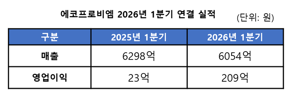 ¿¡ÄÚÇÁ·Îºñ¿¥Àº ¿ÃÇØ 1ºÐ±â ¿¬°á ±âÁØ ¸ÅÃâ 6054¾ï¿ø, ¿µ¾÷ÀÌÀÍ 209¾ï¿øÀ» ±â·ÏÇß´Ù°í 29ÀÏ ¹àÇû´Ù. ¸ÅÃâÀº 6298¾ï¿ø¿¡¼ 6054¾ï¿øÀ¸·Î ÁÙ¾î Àü³â ´ëºñ ¾à 3.9% °¨¼ÒÇß´Ù. ¹Ý¸é ¿µ¾÷ÀÌÀÍÀº 23¾ï¿ø¿¡¼ 209¾ï¿øÀ¸·Î Áõ°¡ÇØ Àü³â ´ëºñ ¾à 809% ±ÞÁõÇÏ¸ç ¼öÀͼºÀÌ Å©°Ô °³¼±µÆ´Ù.