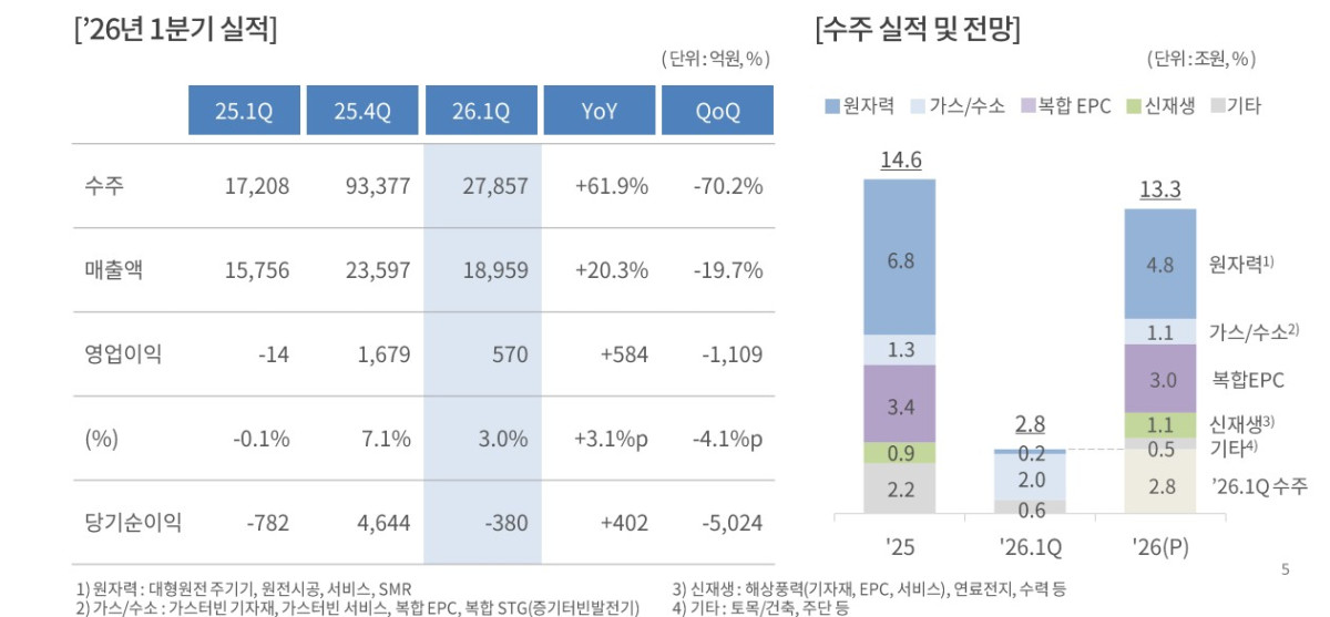 29ÀÏ µÎ»ê¿¡³Êºô¸®Æ¼´Â 2026³â 1ºÐ±â ¿¬°á ±âÁØ ¸ÅÃâ 4Á¶2611¾ï¿ø, ¿µ¾÷ÀÌÀÍ 2335¾ï¿øÀ» ±â·ÏÇß´Ù°í ¹àÇû´Ù. ¸ÅÃâÀº Àü³â µ¿±â ´ëºñ 13.7% Áõ°¡Çß°í, ¿µ¾÷ÀÌÀÍÀº 63.9% ±ÞÁõÇß´Ù. ÀÚȸ»çÀÎ µÎ»ê¹äŰú µÎ»êÇ»¾ó¼¿ÀÇ ¸ÅÃâ Áõ°¡¿¡ ´õÇØ, ¿øÀü ±âÀÚÀç¿Í °¡½ºÅͺó ¸ÅÃâ È®´ë°¡ ¼öÀͼº °³¼±À» À̲ø¾ú´Ù.