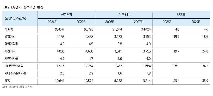 °íÀÇ¿µ iMÁõ±Ç ¿¬±¸¿øÀº ¡°LGÀüÀÚ ÁÖ°¡´Â ¼½ÅÍ ³»¿¡¼ »ó´ëÀûÀ¸·Î ÁÖ°¡ »ó½ÂÀÌ ´õµòµ¥ ÀüÀï ÇÇÇØÁÖ¶ó´Â ÀνÄ, AI¿¡ ´ëÇÑ ³·Àº ³ëÃâµµ°¡ ÁÖµÈ ¹è°æ¡±À̶ó¸ç ¡°±×·³¿¡µµ ¸ñÇ¥ÁÖ°¡¸¦ »óÇâÇÑ´Ù¡±°í ¸»Çß´Ù. ±×´Â ¡°µµÀüÀûÀΠȯ°æÀÓ¿¡µµ °ß°íÇÑ ÀÌÀÍü·ÂÀ» Áõ¸íÇϰí ÀÖ°í, ÇϹݱâ·Î °¥¼ö·Ï LGÀüÀÚ¸¦ ¹Ù¶óº¸´Â ½ÃÀåÀÇ ½Ã¼±ÀÌ ·Îº¸Æ½½º »ç¾÷ÀÇ Ã»»çÁø¿¡ ¸ÂÃçÁú °ÍÀ¸·Î Àü¸ÁÇϱ⠶§¹®¡±À̶ó°í ¼³¸íÇß´Ù.